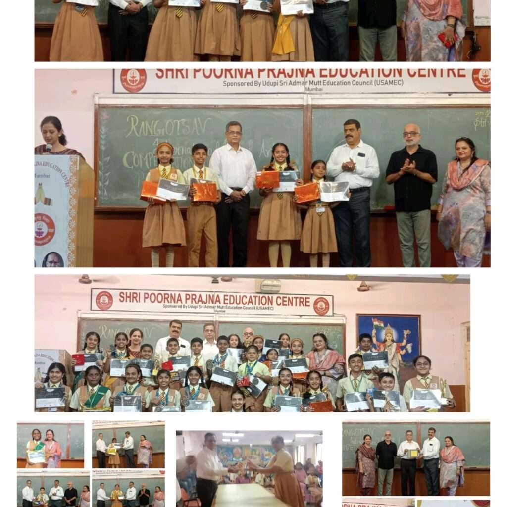 Poorna Prajna high school Rangotsav International Level prize distribution held on 28/03/2025 In the school auditorium. Rangotsav International Level competition held on 2/2/2025 at Aadarsh Vidhyalay, Goregaon (w)